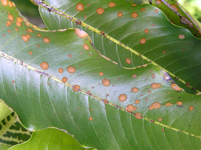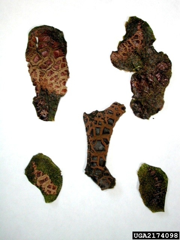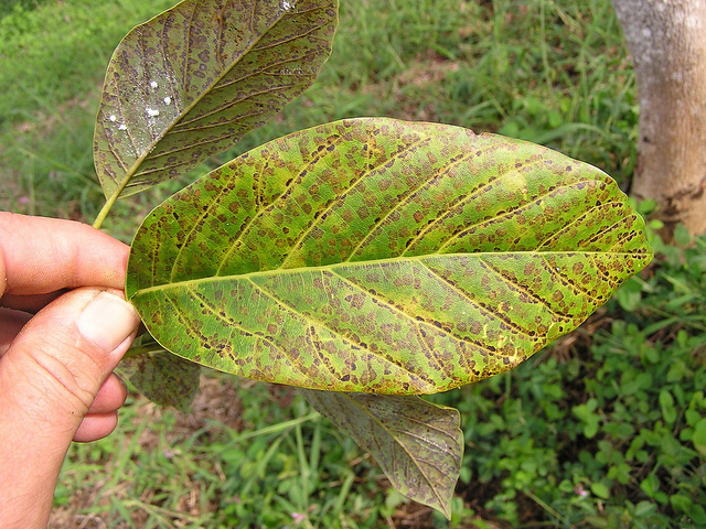- نمای نزدیک از ضایعه لکه ای برگ جلبکی